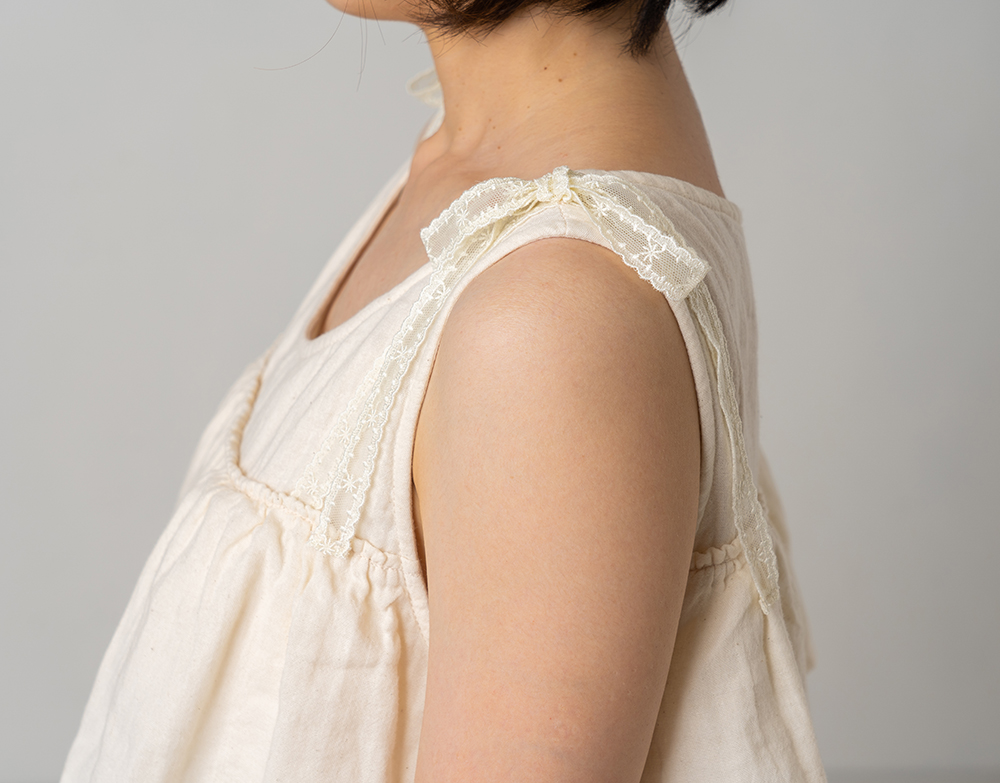 - ・身頃の胸元から下部分はダブルガーゼが2枚重なっているため、ショーツが透けにくいです。