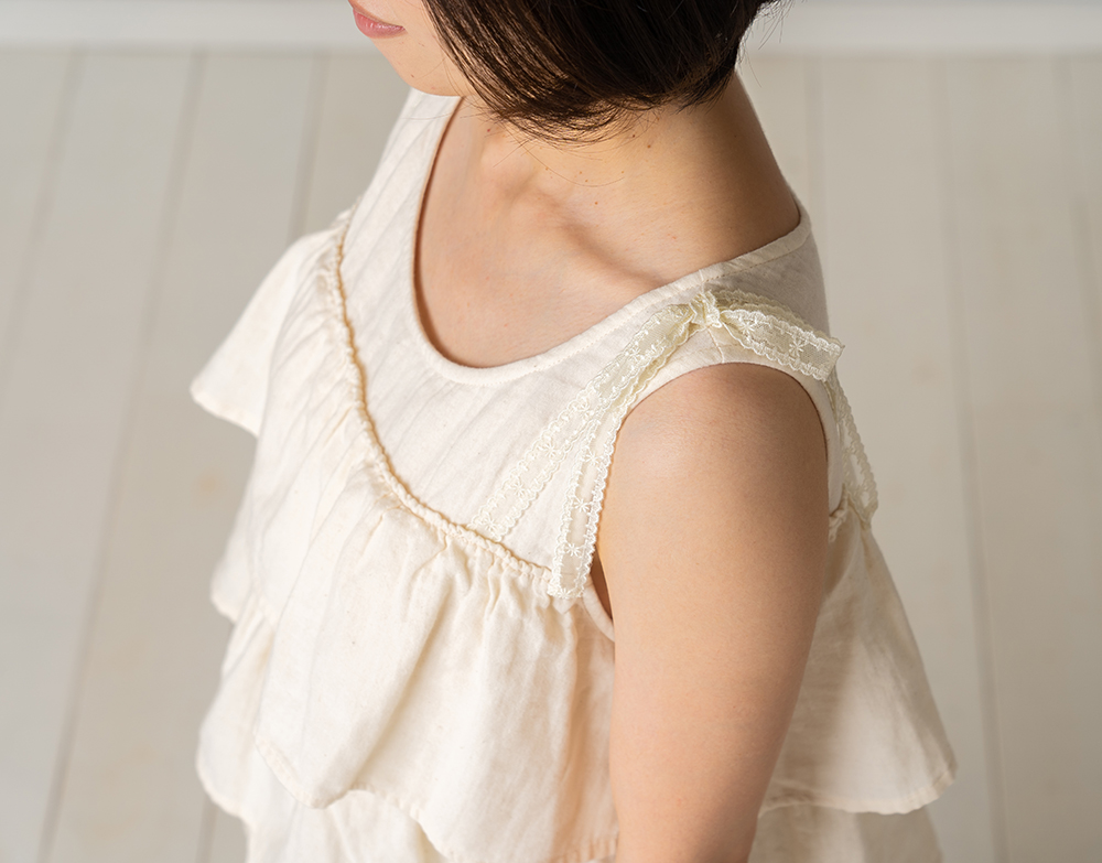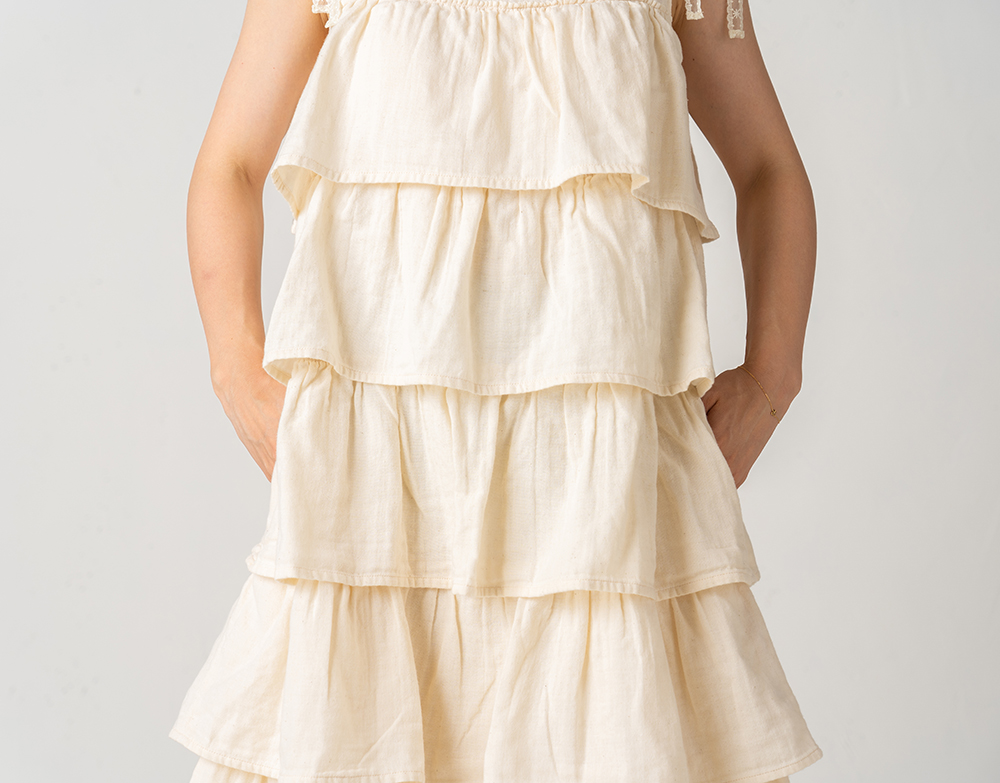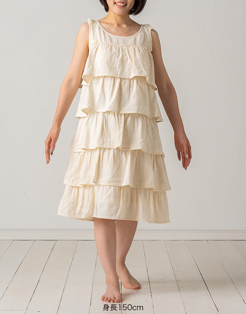 ダブルガーゼのティアードワンピース